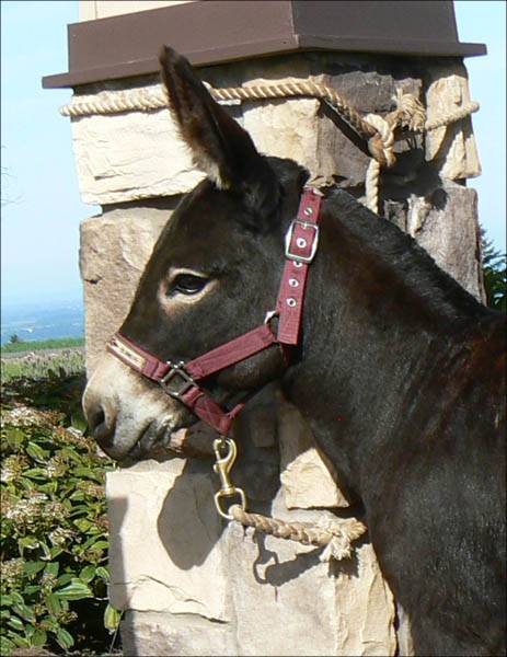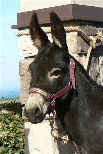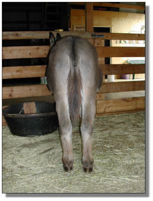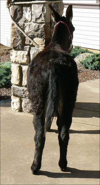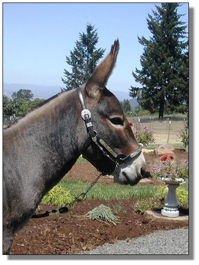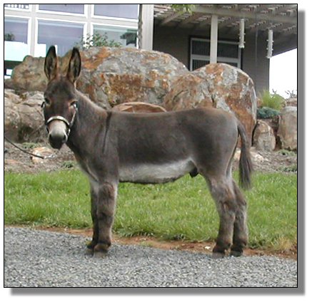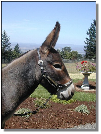 Rocky update: It's with a deep regret that we have to announce the demise of our great little herdsire, Wit's End Rock'n Rocky. All you guys out there, just know that he went down bravely. He stood as long as he could but the 3rd shot layed him down. He arose 20 minutes later, a little woozy but with a big smile on his face!! He knows he is now THE GREATEST LITTLE BROWN GELDING of EOLA HILLS MINIATURE DONKEY FARM!!!!!!!!! (still with the straightest dam legs West of the Mississippi...!!!)